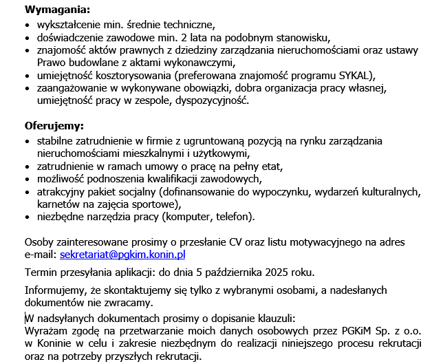 PGKiM Sp. z o.o. zastrzega sobie, że przysługuje jej prawo unieważnienia konkursu bez podania przyczyny.