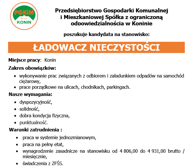 - Przedsiębiorstwo Gospodarki Komunalnej i Mieszkaniowej Sp. z o.o. w Koninie